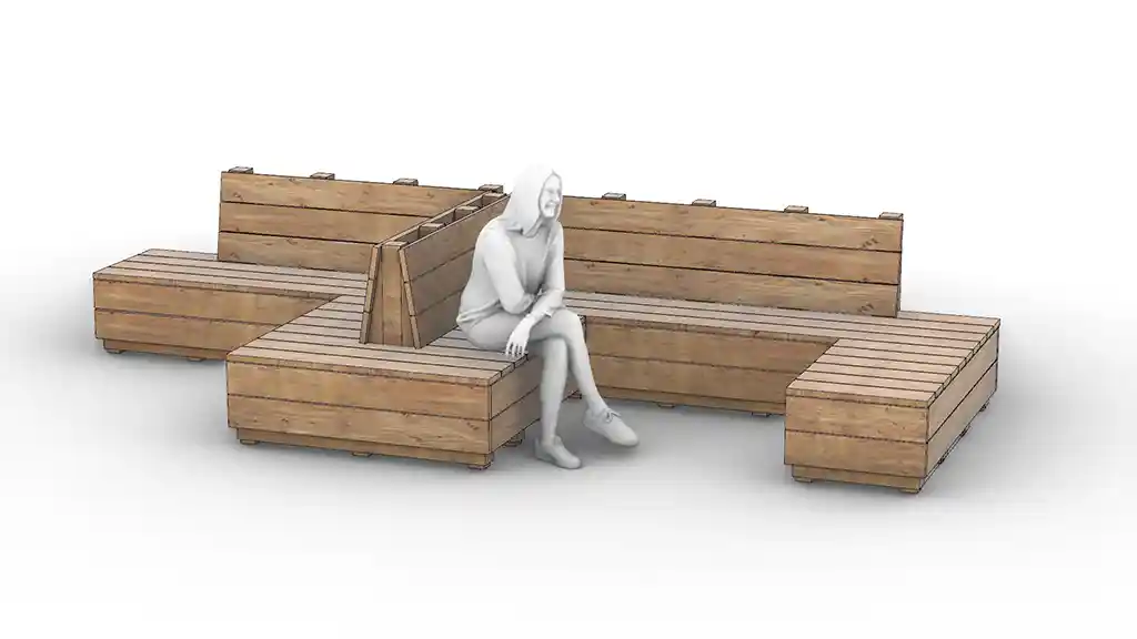 Partizipatives Möbelprojekt verbindet Gewerbetreibende und Anrainer durch maßgefertigte Sitzlandschaften aus Lärchenholz