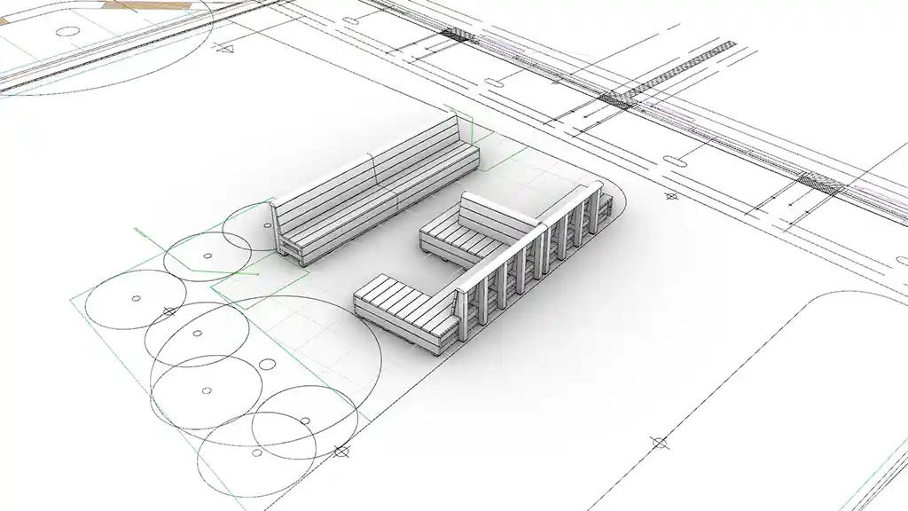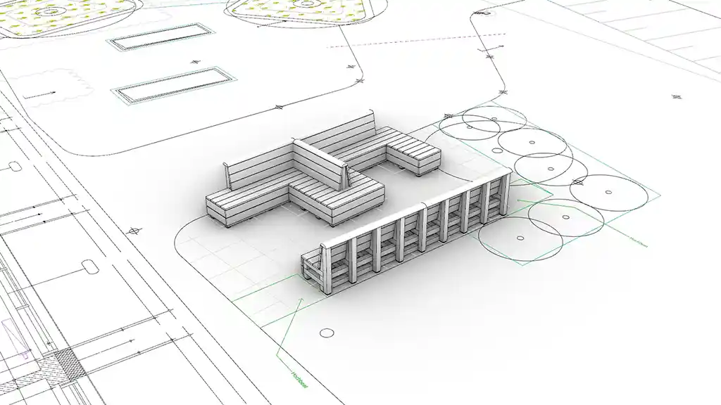 Die Entwicklung der Außenmöbel erfolgte in drei aufeinanderfolgenden Workshops gemeinsam mit engagierten Freiwilligen aus der Nachbarschaft. In diesem kollaborativen Prozess wurden Ideen gesammelt, Konzepte entwickelt und gemeinsam Entwürfe erarbeitet. Als Designer übernahm ich die professionelle Ausarbeitung der Pläne, brachte die Entwürfe in eine umsetzbare Form und erstellte die Maßpläne für die Realisierung.