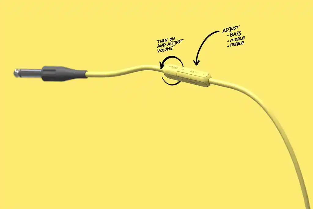 Die Soundregelung erfolgt über hochwertige, haptisch optimierte Drehregler an der Oberseite des Verstärkers. Ein besonderes Feature: Der integrierte Controller am Instrumentenkabel ermöglicht bequeme Klanganpassungen vom Spielort aus – keine Unterbrechung mehr für manuelle Einstellungen am Gerät.